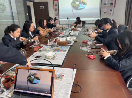 活動現場,女員工們卸下繁忙的工作,放下往日的疲憊,大家興致勃勃、笑語盈盈,交流DIY心得;在活動過程中愉悅了身心,舒緩了壓力,享受到動手的樂趣,用慧思巧手制作出獨具特色的微景觀生態瓶,為自己送上一份特別的禮物。
