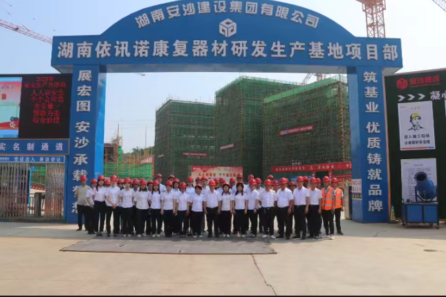 啟動儀式在湖南依訊諾康復器材研發生產基地項目舉行。儀式上,蘇妙波總經理代表公司為安全生產月活動作動員講話,并表示下一步,公司將圍繞主題活動強化宣傳動員,以安全生產月活動為載體,積極開展安全生產學習培訓,加大安全生產整治力度,增強全員安全意識,不斷促進項目部安全生產水平的提高,推動安全生產形勢持續穩定。啟動儀式上宣讀了公司安全生產月活動方案,公司將圍繞“人人講安全、個個會應急”這個主題,開展現場安全文明施工,并在興進郡府二期項目現場講解鋁合金模板及附著式升降作業安全防護平臺技術應用、砼實體、磚砌體實體質量等交流學習活動。